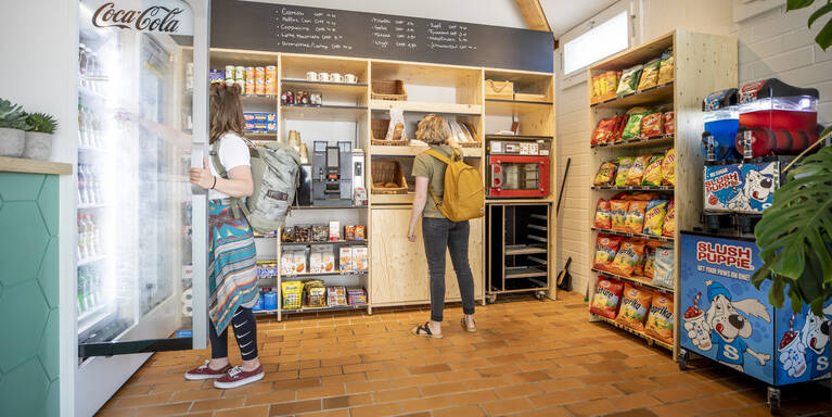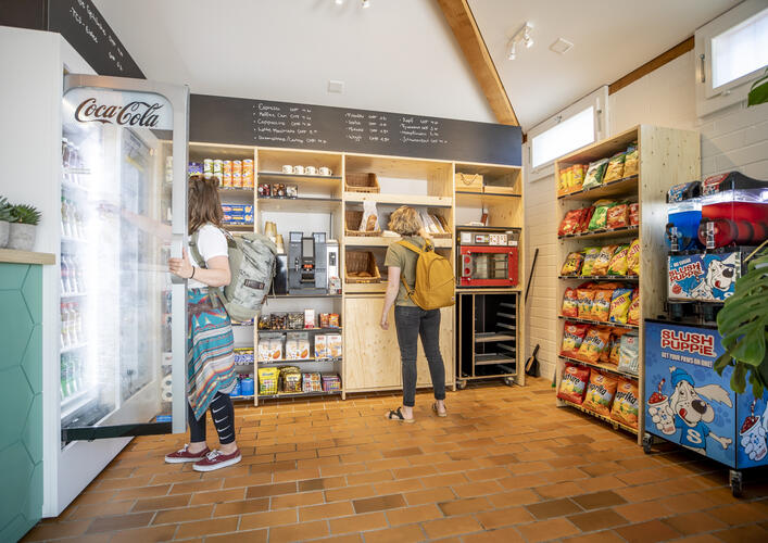 In unserem Mini-Shop finden unsere Gäste das Nötigste für ihren Aufenthalt auf unserem Campingplatz oder für einen kleinen Einkauf im Vorbeigehen: Getränke, Brotwaren & Kaffee, Lebensmittel und Snacks. Der Shop befindet sich im selben Gebäude wie die Camping-Réception und ist ebenfalls an 7 Tagen die Woche geöffnet.